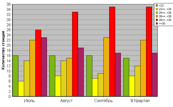 Распределение количества станций по взвешенному среднеквадратичному значению 'наблюдение-прогноз' для геопотенциала